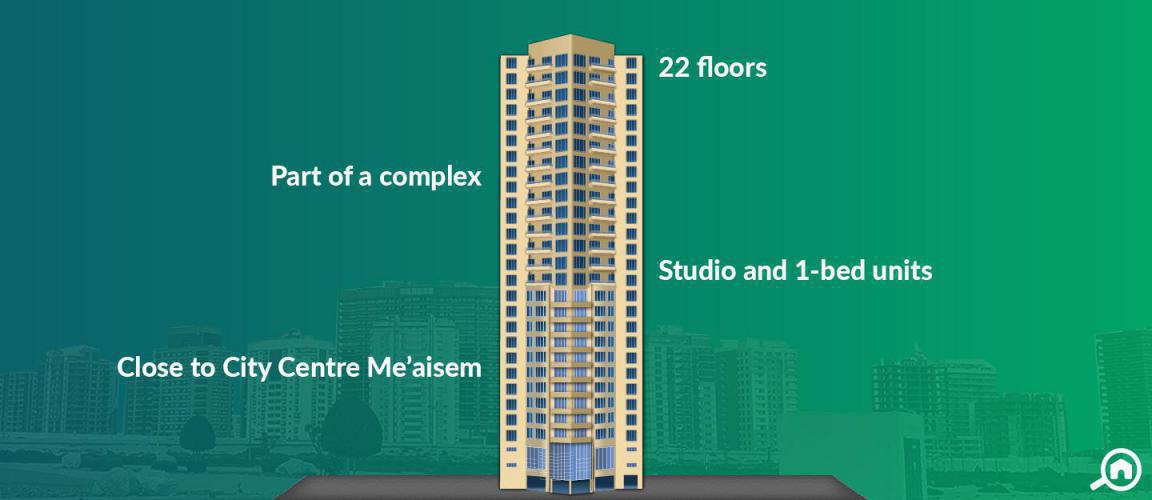 There are quite a few residential buildings nearby, such as DAMAC Lago Vista, DAMAC The Crescent and Lakeside Tower. Aloft Me'aisem is one of the many hotels nearby.