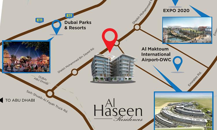 Al Haseen Residences is a premier residential project located in Dubai Industrial Park, one of Dubai's largest industrial hubs. The address is one of the most coveted locations as every home provides comfort and security.