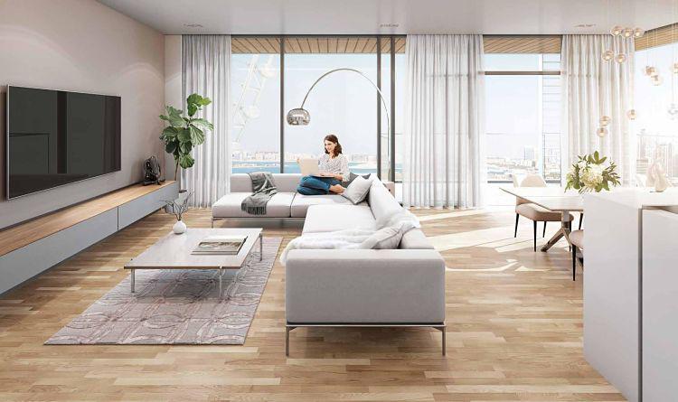 As well as this, floor to ceiling windows remove the barriers between the apartment space and the eye-catching views of Ain Dubai, the stunning sea, the gorgeous greenery and a boulevard.